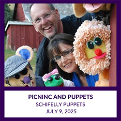 Join Schiffelly Puppets as they present their new storytelling with puppets program and continue the tradition of humor and education with more audience participation and involvement. Fun for everyone ages 4 – 94. Come join us and be part of the fun.
